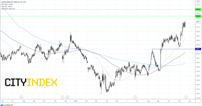 50日均线在10月回调期间为股价提供了坚实支撑。如果英国皇家邮政周四公布的业绩令人失望,50均线(今日价格为245便士)可能提供支撑。不过,若跌破该价位,或为探向220便士水平支撑打开大门。只有下破该价位才能打消当前看涨趋势。