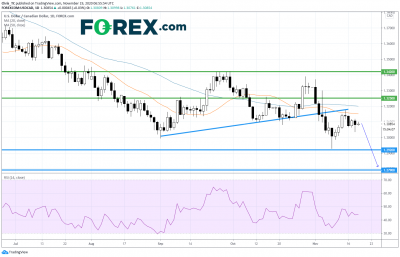 技术面看,美元/加元日图上攻前上涨趋势线后受制于50天均线(蓝色线)。日图RSI在中性区域附近。读者或因此考虑在1.3250水平阻力位下方扩大下跌的可能性。最近的支撑位可能在11月低点1.2920,第二支撑位或在2018年9月低点1.2790。