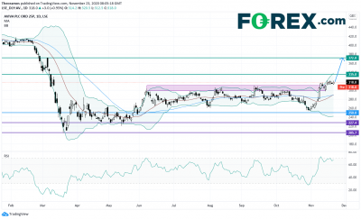 技术面角度来看,该股已上穿307便士附近关键交叠区域。只要守住250便士, 后续或攻向335便士和372便士。
