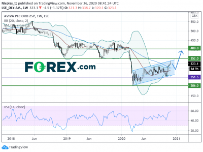 图表分析师角度来看,股价正在反弹,逼近上斜通道顶端。不排除短线回调的可能性。价格需要守住251.5便士上方,才能维持看涨。若升穿352便士阻力,将打开攻向408便士的路径。