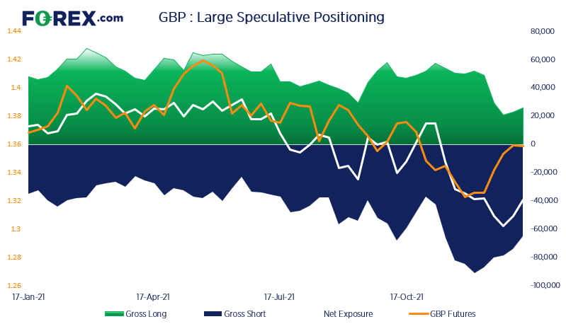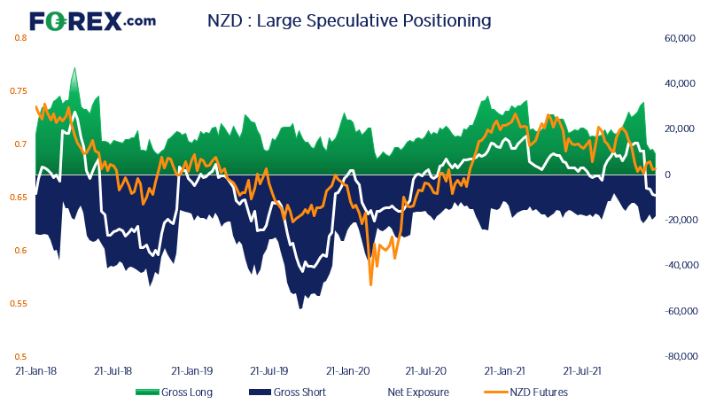 新西兰联储仍然是立场相对强硬的央行,但大型投机者却净做空纽元,这多少有点出人意料。但我们在未来几个月里确实将应对立场强硬的美联储,届时收益率差可能再度发挥作用,影响纽元汇率的走势。从短期看我们注意到总空头约为2万左右,而且11月以来一直相当稳定地保持在这个水平。结合之下我们可以得到初步线索,即空头可能正在丧失动能。但总多头也处于2020年4月以来最低点(且趋于下降)。所以,在认定周图反转之前我们希望做多兴趣回暖,这个过程可能长达数周乃至数月。
