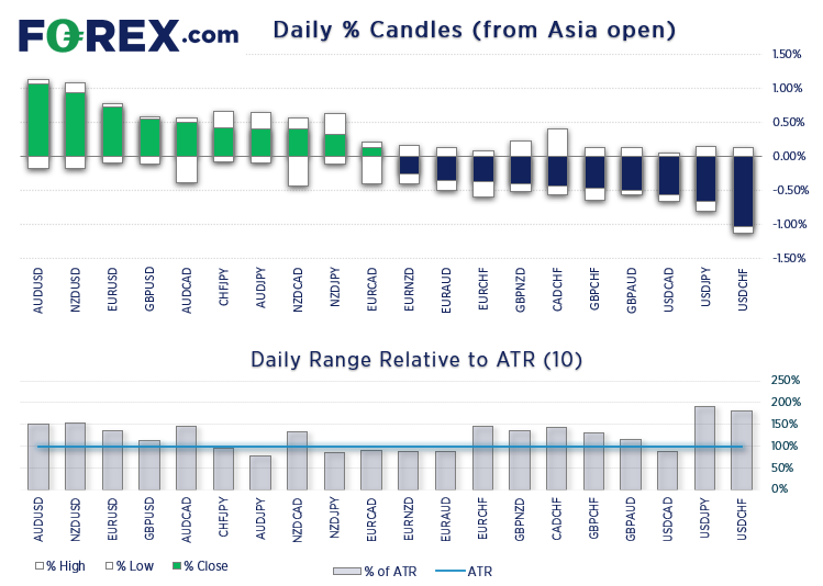 美元是最弱货币,兑所有主要对手货币悉数下跌,其中美元/瑞郎跌逾1%而美元/日元坚定下破115。美元指数终于打破持续了2个月的区间,下破95.50支撑位并挑战了6月趋势线支撑。这自然使得欧元创下2个月高点并坚定收上1.14。澳元是最强主要货币,而瑞郎和纽元紧随其后,兑美元的涨幅都超过1%。