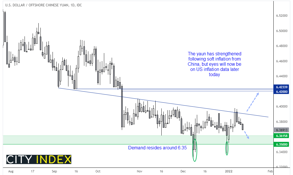 如果答案为肯定,可以预计中国政府将在第一季度推出更多刺激措施,这也解释了为何富时中国A50指数今天在通胀数据揭晓后上涨了约0.7%。虽然现在判断底部还为时过早,我们仍猜测指数短线或自15200反弹,攻向16000。