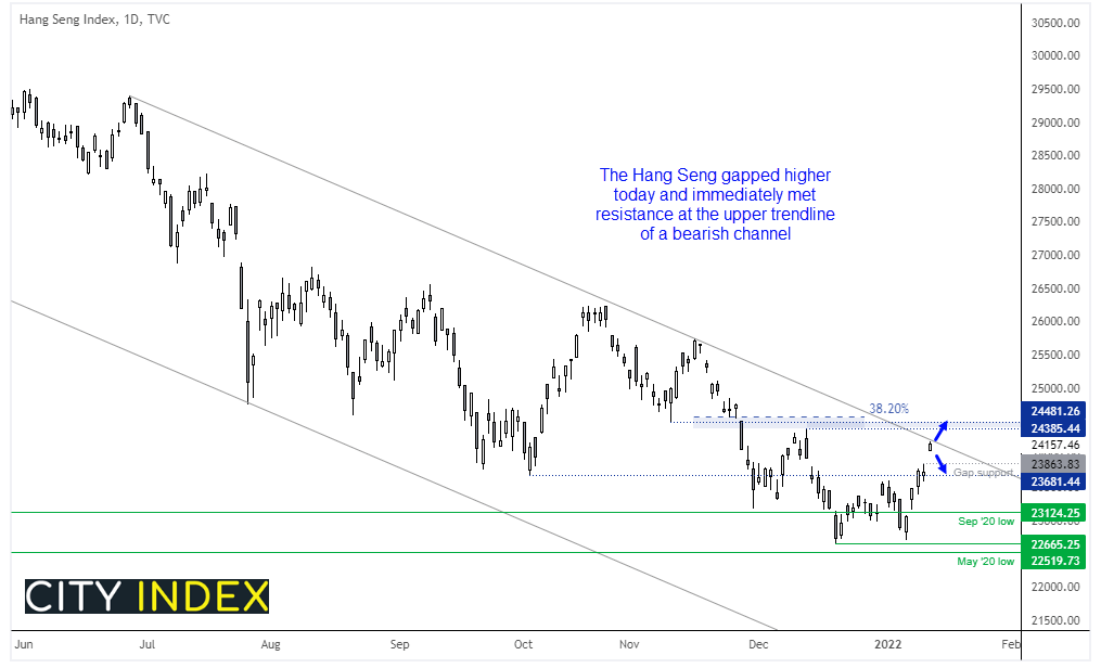 恒生指数反弹至趋势通道上方