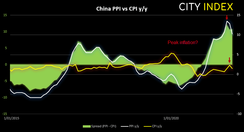 去年12月,糟糕的零售和投资数据已促使分析师下调增长预期。生产者价格指数(PPI)也在触及26年高点后连续第二个月下跌。鉴于PPI为关键通胀参数,而CPI近年来一直滞后于PPI,我们现在需要开始考虑中国出现通货紧缩的可能性吗?
