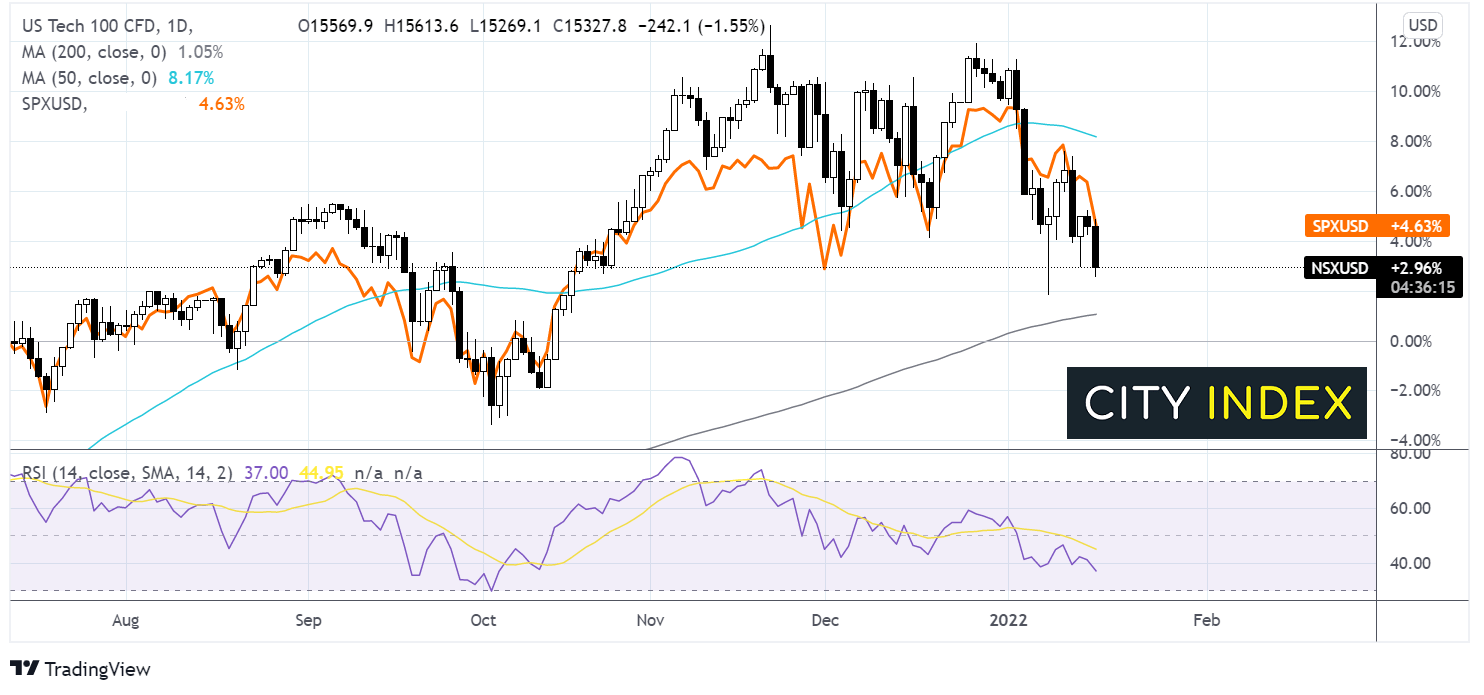 科技股高权重的纳斯达克指数自年初以来下跌了4.8%。与此同时,标普500指数科技股年初以来也下跌了约5%,微软(Microsoft)等一些大型科技股股价下挫7%。相较之下,标普500指数大盘2.7%的跌幅要温和许多。