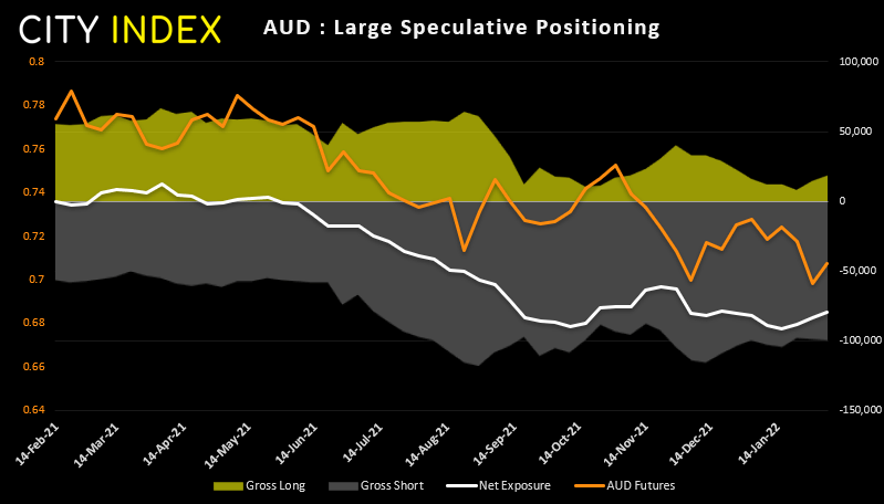 做空澳元期货这个想法并不新鲜,自去年5月以来,交易员们一直在做空澳元,且在2021年10月和2022年1月达到创纪录的做空规模。尽管上周总体空头基本持平,但总体多头增加约9.7万份合约,连续第二周上升。虽然可能并非理想做多信号,但确实要对如此极端水平上做空澳元行事谨慎。