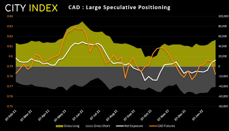 另外一种跟投机性头寸设置信号相反的是加元。随着多仓上升,空仓下降,加元期货净多头头寸落在27周高点。但和欧元一样,加元同样因鹰派FOMC会议承压(其实除美元外其他货币悉数承压)。这可能导致未来几周净多头仓位反转,重回净空头头寸格局。