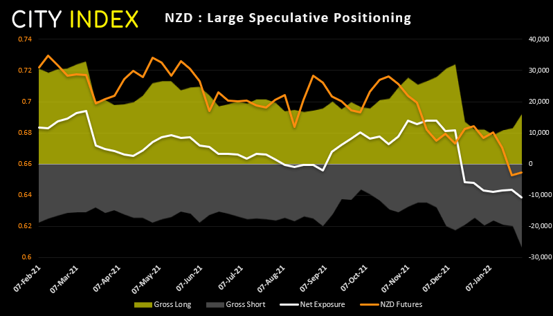纽元人气仍然低迷,净空头敞口升至2020年6月以来最看跌水平。但在总空头升至最高水平同时,总多头规模也有所增加。看起来,投资者要么在对冲押注,要么在低吸。鉴于新西兰联储态度强硬,通胀持续飙升并远超联储目标,我们倾向于后者。
