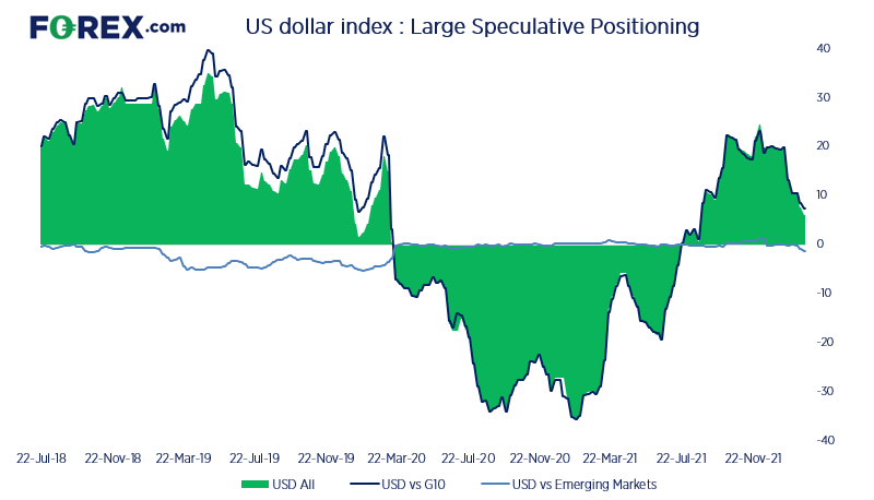 美元多头持仓继续减少,与美联储即将展开多次加息的事实相悖。但原因也可能是投资者计入如此多次加息的前景后担心,美联储可能将美国经济拖入衰退境地。IMM的数据显示,美元净多头持仓已降至4月以来最低点,已经是连续第五周减少。与此同时,交易者持有的新兴市场货币兑美元的多头持仓创下2年左右之最。
