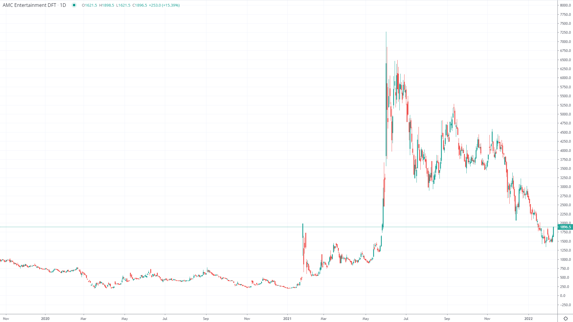 新冠疫情爆发之初电影院被迫关门,导致AMC Entertainment面临破产,其股票也遭到大量做空。2020年3月股价从6美元左右跌至区区2美元。