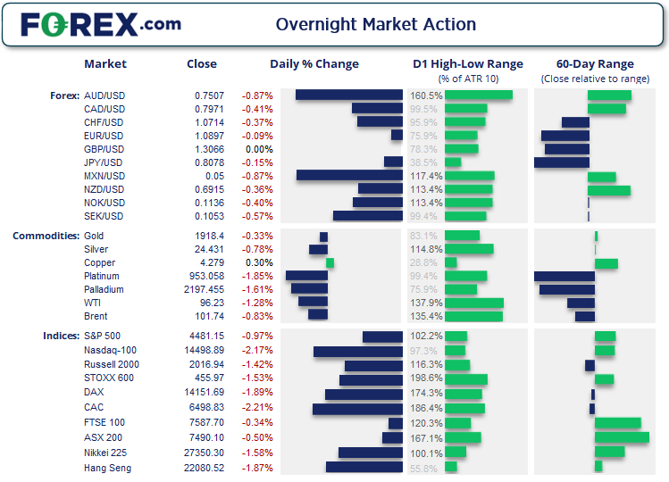 FOMC会议记录巩固了这样的观点,即接下来,从下次会议开始,美联储将进入积极加息与缩表的轨道。美股隔夜因此再度下跌,但前一天就已因为美联储官员Daly 和 Brainard的强硬评论而承压下挫。在会议记录的推动下,标普500指数跌至12天低点并考验其50天指数移动均线。该股指56%的个股下跌,11个板块中有6个板块走弱,领跌的是休闲消费板块。标普500指数反弹后回到4481,至少暂时在50和20天指数移动均线处企稳。