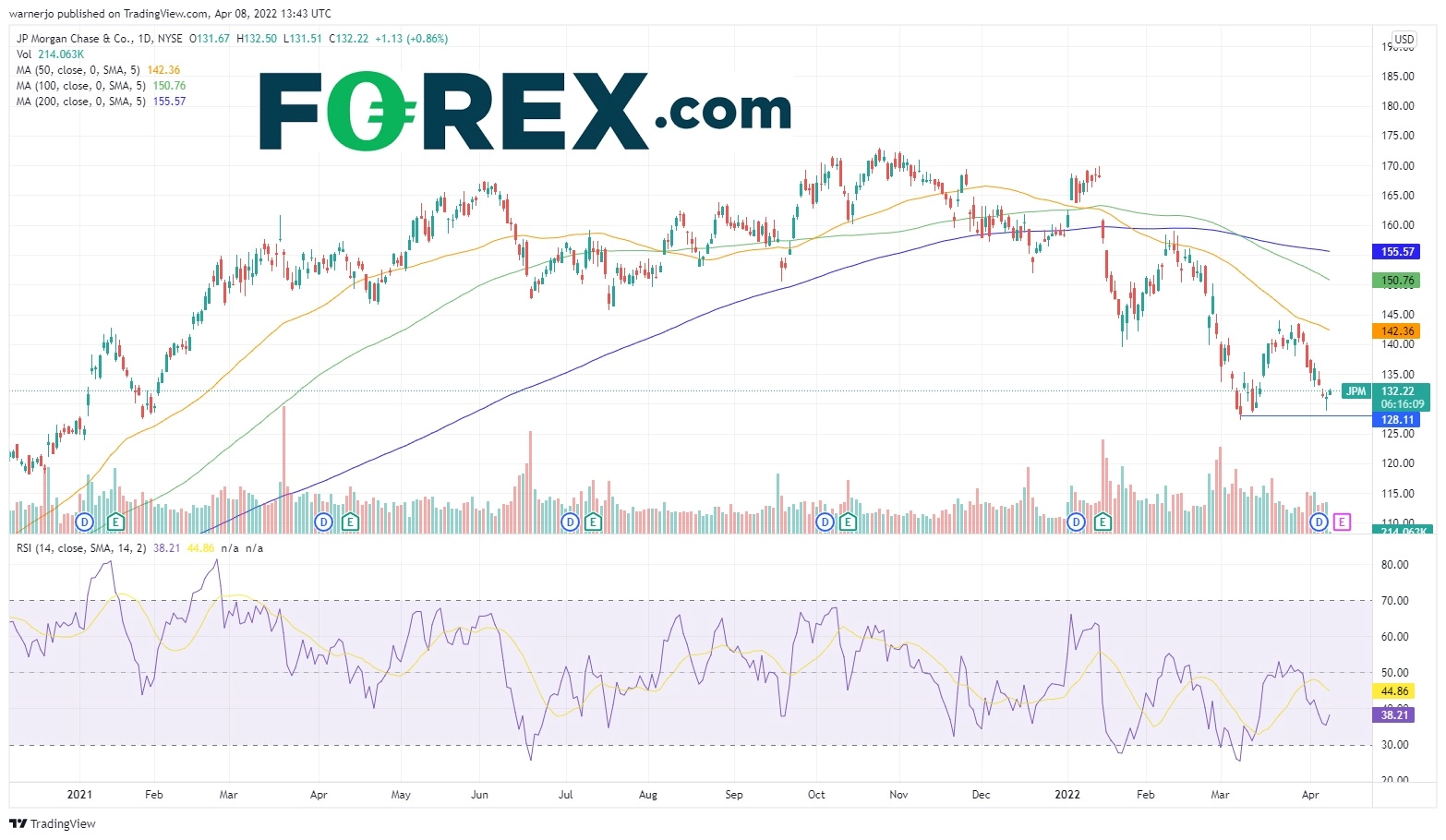 摩根大通股价因公司各项创记录数字而于2021年跃升至历史新高,但过去三个月始终承压下挫,1月中旬以来下跌了22%。