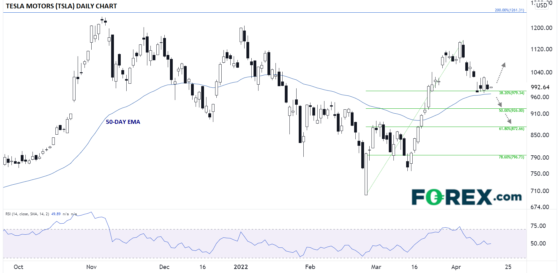 此文发稿时,股价呈现在1000附近企稳的信号,且近期反弹行情的38.2%回档位980和50天指数移动均线970附近构成支撑。如果一季度财报好于预期,多头或利用当前支撑位,借势上攻4月初高点1100区域。而如果业绩令人失望,股价或击穿900一线上轨支撑,扫清扩大下行的障碍。届时这只受欢迎的股票的价格,或先后下探近期反弹行情的50%回档位925附近和61.8%回档位875。