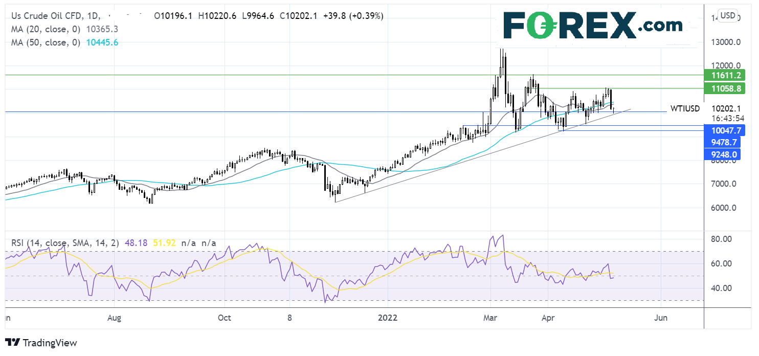 西得州原油在110.50遇阻后调头向下,跌破了50和100期均线,后在100.00大关和5月低点附近企稳,目前正蓄力回升。