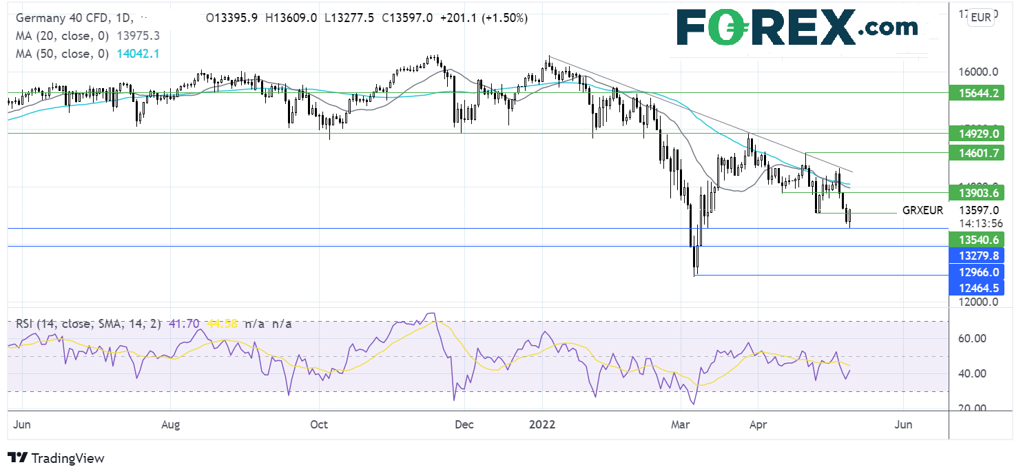 受到通胀飚升、利率上升和经济衰退担忧的冲击,投资者沽出风险资产,DAX昨天收低2.3%。