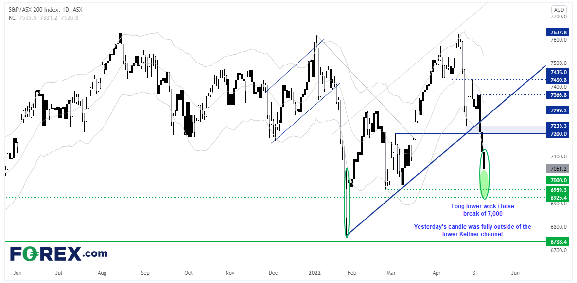 ASX200指数昨天连续第三天跌逾1%,持续时间为2020年6月以来最长。顺便一提,上次出现这样的情况时也是指数构筑波段低点之时。但这样的统计数字最好具体问题具体分析。