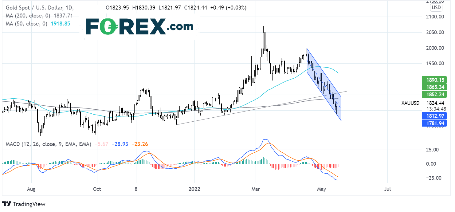 但要注意,黄金继续交投于陡峭的下降通道内,空头有扩大下行的希望。如果下破过去多次构成支撑和阻力的1812,可能打开跌至昨天低点1786的大门,并形成下降的低点。